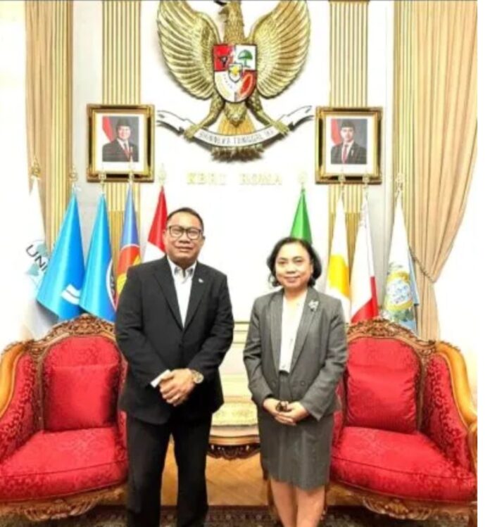 Keterangan gambar :Fary dan Deputy Chief of Mission (DCM) KBRI Roma, Tika Wihanasari saat kunjungan di KBRI Roma.