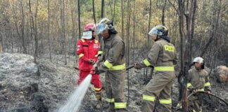 BRIMOB KEPRI GERAK CEPAT PADAMKAN KEBAKARAN HUTAN DI BUKIT DAENG TEMBESI,...